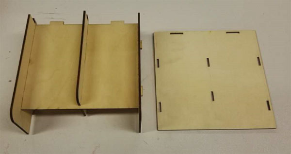 At last, connect the back piece to the right position. After all, pull the inner horizontal piece to its right posiition. So all the parts of the box were locked together.