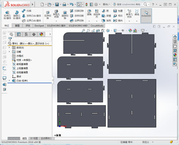 This time I want to make a wood box for placing electronic devices. I design the box by SolidWorks. In order to fit the different thickness of material, I set the parameter h1 to represent the thickness. When material changes, I should only change the value of the parameter,and the shape changes automatically. Designing completely export the design file to DXF formart.