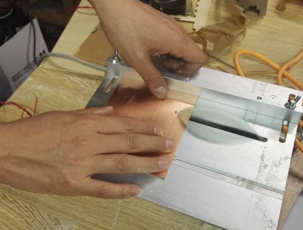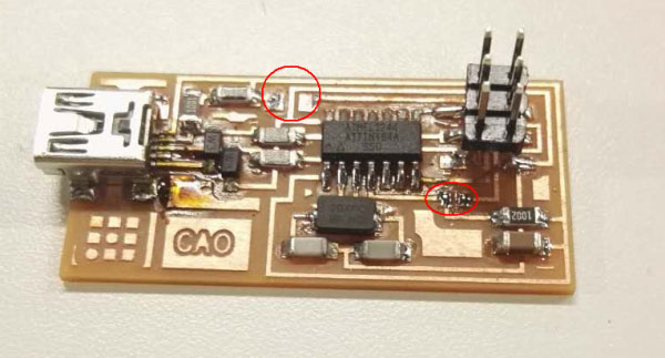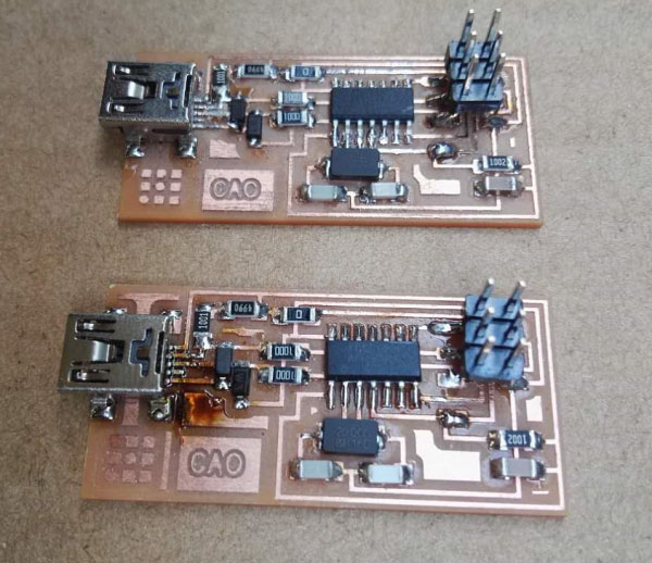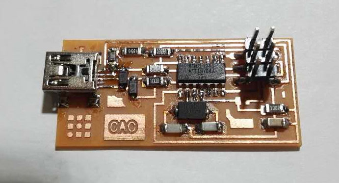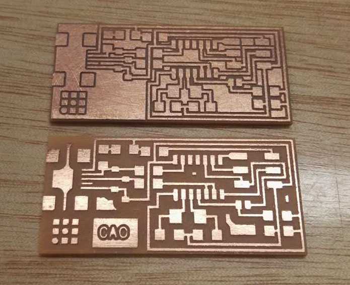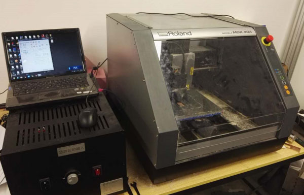Our milling machine is the Roland MDX-40A. At first, I study the user's manual and software to know how to operate the machine. Prepare a sacrificial board so the PCB to be cut is placed to top of it. Cutting the PCB into parts.