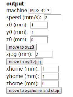 On the Output Opitions, choose the machine type MDX-40, set the coordinate as the following.click Process, choose 1/64"mill. On the right part of the screen, choose the right parameter, then click calculate button.