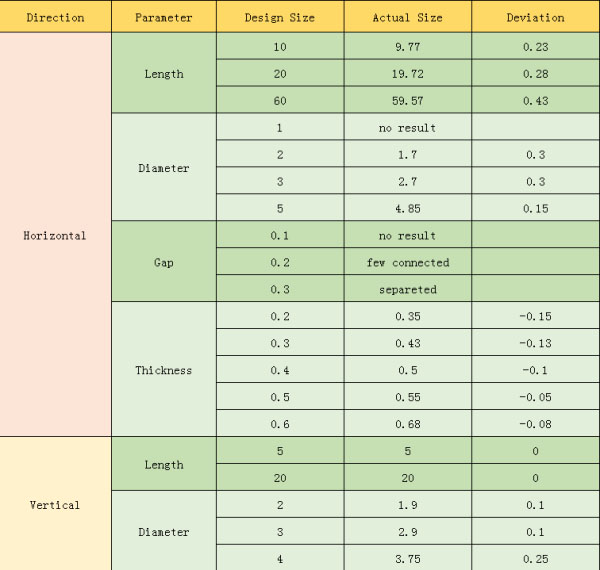 From the table, the vertial dimension is accurate, the vertical diameter is about 0.1-0.2mm deviation. The horizontal dimension is about 0.3mm deviation, the horizontal diamter is also about 0.3mm deviation, the gap distance is 0.3mm.