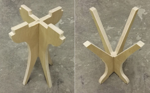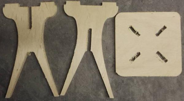 I design my stool in AutoCAD. The material of the stool is plywood, the thickness of the plate is 17.2mm. The stool consists of three parts.
