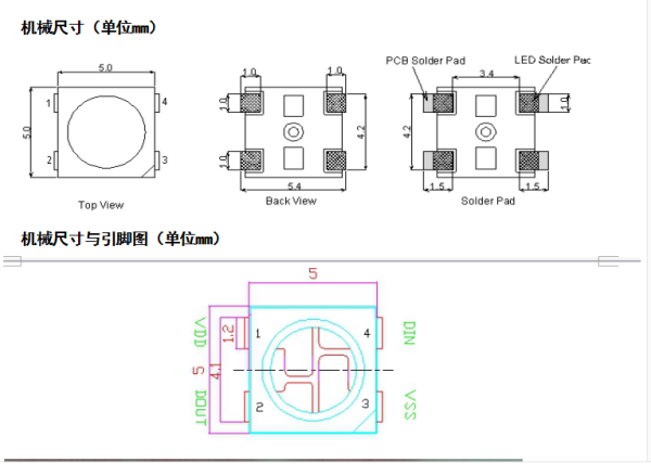 The pin and the size of WS2813 is below: