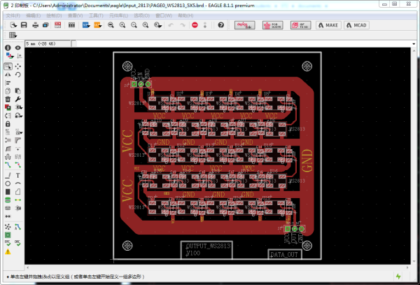 I design the WS2813 LED Matrix using Eagle. You can download the design file here. My WS2813 LED Matix is 5X5, with 25 LED.