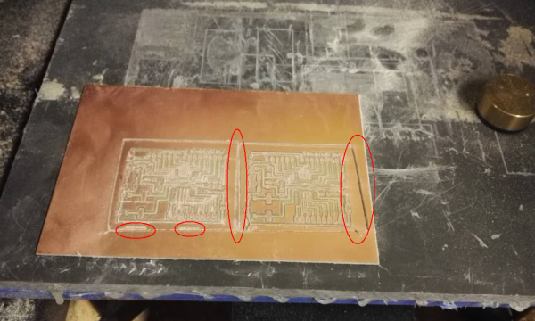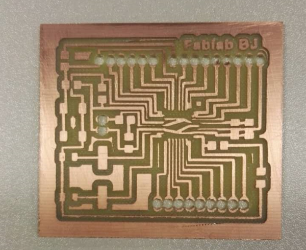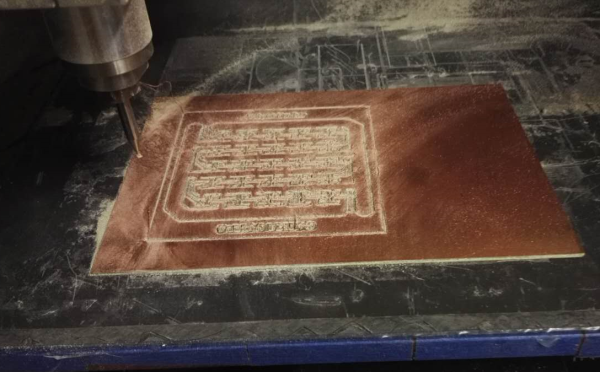 When milling the 328P board, the support board of the milling machine is not fixed well, and it moved while milling, so the processor board is destoried. The picture is the following.