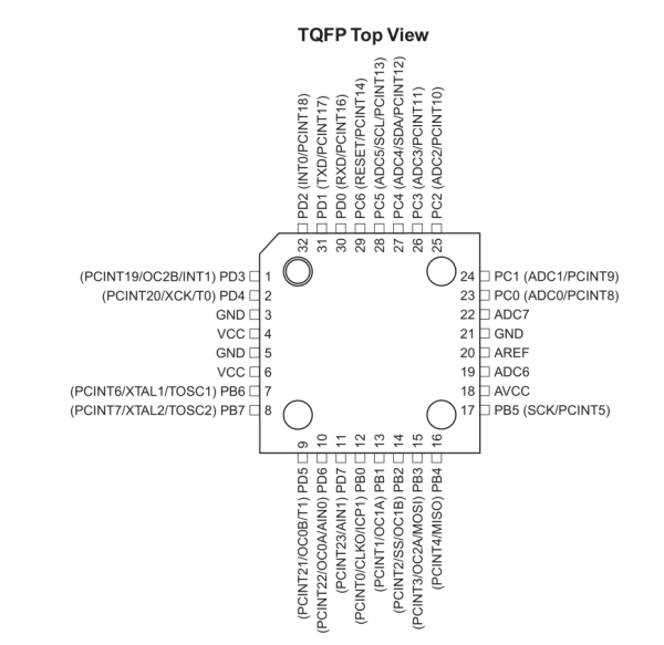 The following is the pinout of 328P.