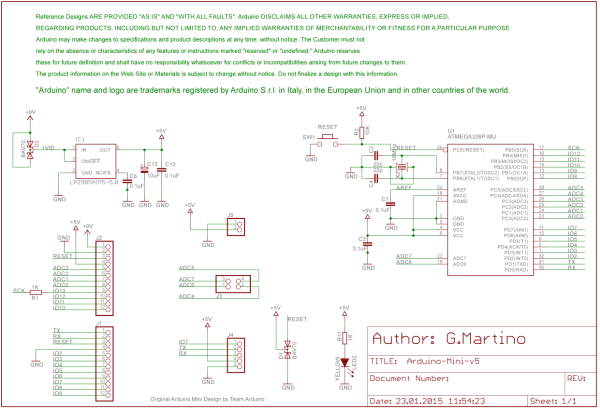 The following is the schematic of Arduino Mini with 328P processor.