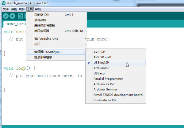 In this project, I use FabISP burning the bootlaoder of 328P, and uploading the program with it.