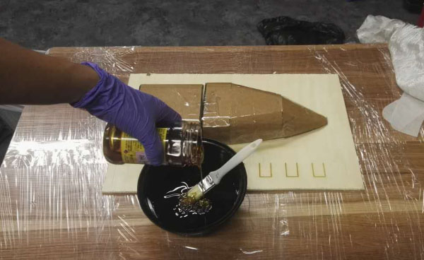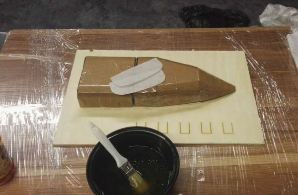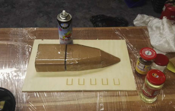Step 2: Spray release agent on the surface of the base plate and ship model