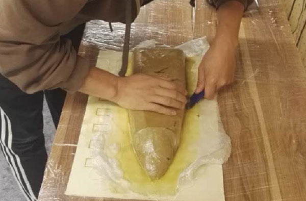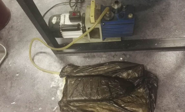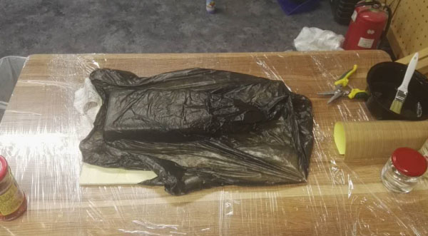 Prepare several large plastic bags, spray the release agent inside, and put the model into the bag. Because my plastic bag is very thin, I use more than one. Use vacuum pumps to remove air from the bag and close the resin and fiberglass cloth to the model.