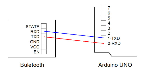 • Connection: Bluetooth use serial port to communicate, the TXD and RXD wire connection flow below: