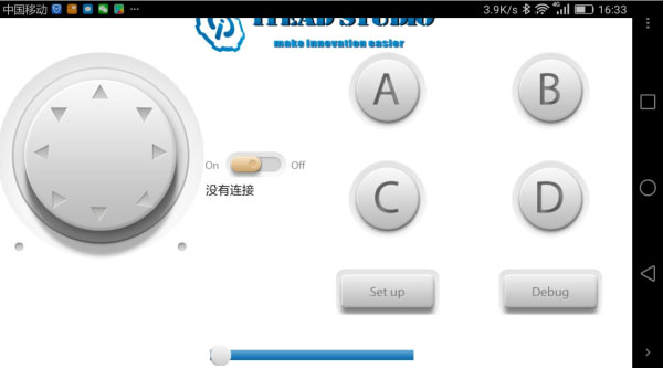 This project uses mobile App to control LED Matrix through the Bluetooth wireless communicaiton. The interface of the App displays below, when you press the arrow key of different direction, the LED Matrix will display the same arrow direction.