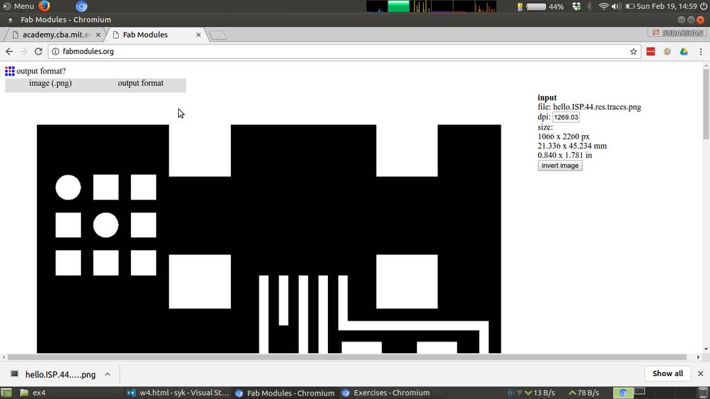 Selected png image of PCB and fab module has detected size of board based on image size. Image size detected as 21.336 x 45.234 mm