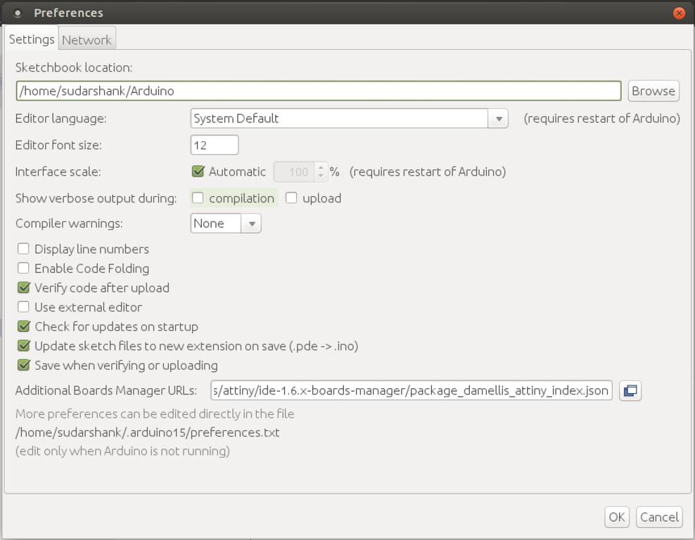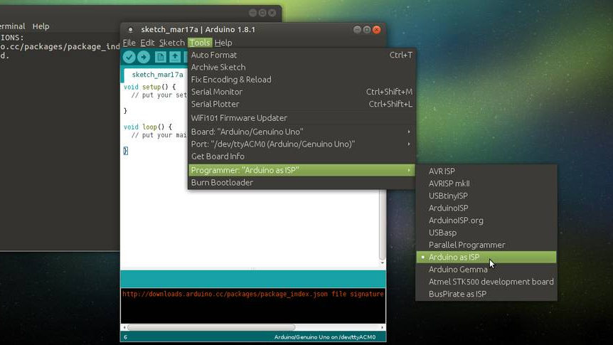 Port -> /dev/ttyACM0 (Arduino/Genuino Uno)