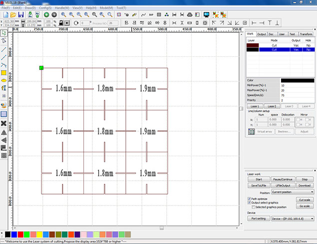 As you can see we have explored parameters for through cutting, marking, half cutting/folding and rastering/hatching.