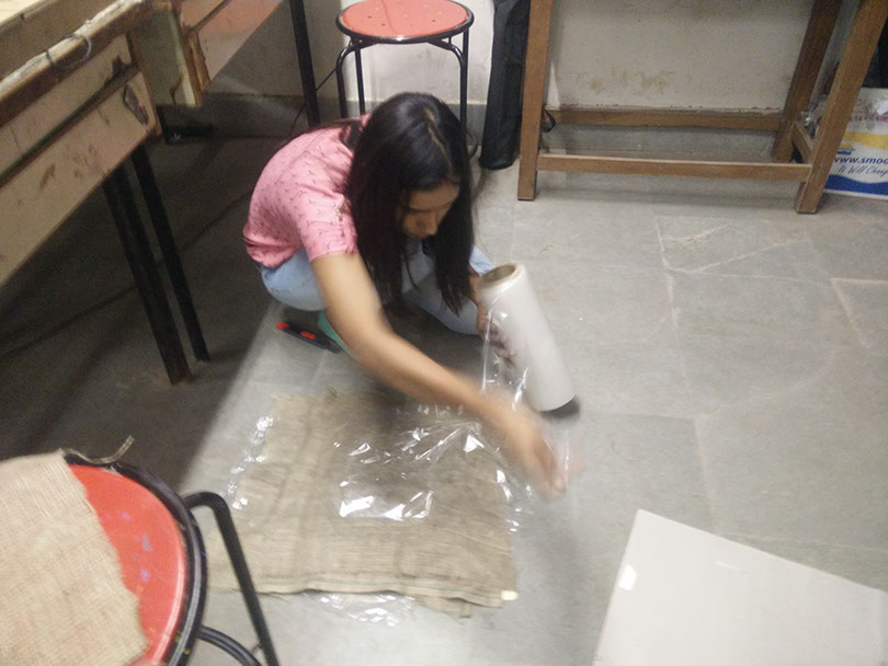 I repeated the process using 3 pieces of Burlap and then covered it with a cling wrap sheet on top of it.