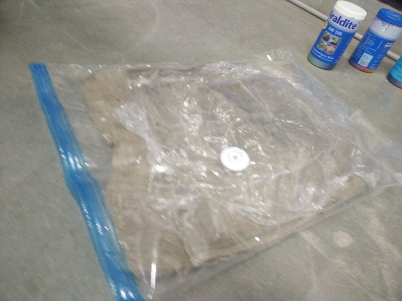 For compression process, I used vaccum bags. Again. I kept my tensile material as burlap and used Epoxy resin and Hardener.