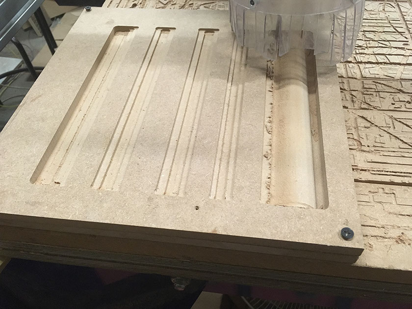 Next step was to set parameters for the roughing toolpath. The important parameter here is for the tool being used. I used 1/4th straight cut bit at the following parameters: