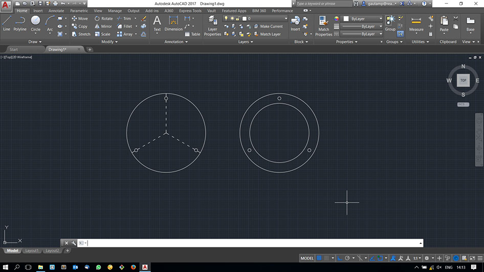 I started with drafting of the base plate and the top ring required for the printer. Hence made a Circle of the required diameter and offseted it again for the top ring. Commands used: Circle, Offset.