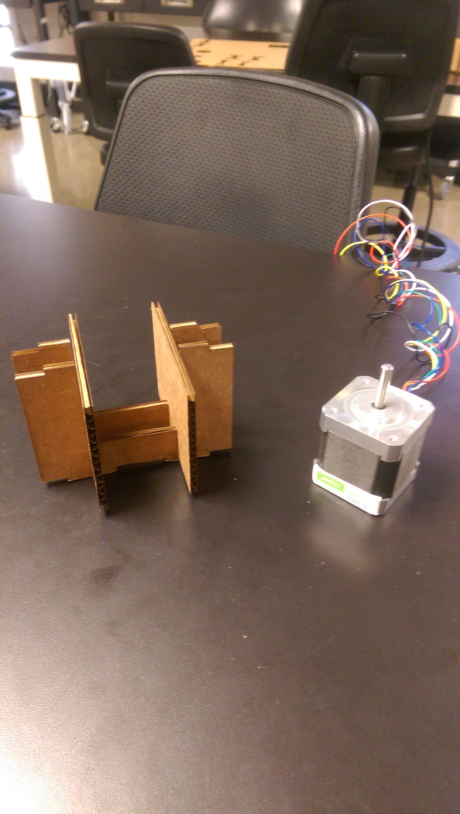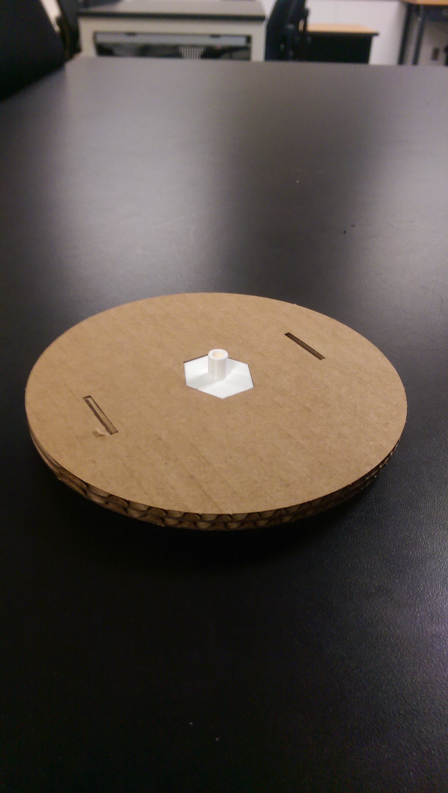 For the actual rotation platform, I designed two cardboard sheets and a 3D printed mount, to plug them on the motor shaft.
