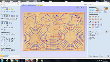 With the scale model I was able to fix some stability problems, so I begin to set the pieces for the shopbot. For this scale, I defined some more details, like hiding the press fit pins. On the vcarve software I set up to four toolpath's, places for the screws, boxing, inside and outside cuts.  The mill I used was 1/4" Up-cut. On every toolpath, i had to define machine vectors and mill direction, for example for boxing and inside cut I set inside/left machine vectors, while for outside cuts I selected outside/left machine vectors. Looking for better cut quality, I chose climb as mill direction. I also set the tabs, which make that the pieces do not move after cutting before finishing the process, and fillets for the pressfit joints. The cutting and millin order for the process, was very important to avoid milling problems with the MDF board.