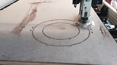 To be able to design for big format, we have to test the press fit joints for MDF and Triplay machine cutting, so we made several tests on a 12mm and 18mm board. To operate the Shopbot, the first we have to do is to fix the board to the machine, then we have turn on the machine to set up XY axis and Z axis using an aluminium plate. After setting the origin, we have to open a .dxf file with the  design into the vcarve software to set it for the machine and saved it into a .sbp file. In the vcarve, we set the size and thickness of the board, we set the cutting path and order, and the type of drilling mill. To begin cutting, we open the .sbp file on the shopbot software, turn the air extractor, then turn the spindle on and send the cutting order.