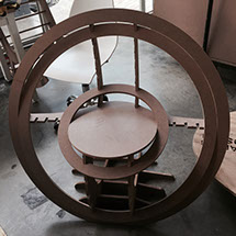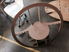 After milling with the shopbot, the next thing to do was to sand the edges of the pieces to have good finish, and then the assembly of the chair. I had a problem with the turning of the rings and the thickness of the MDF, so I had to force the material a lot.