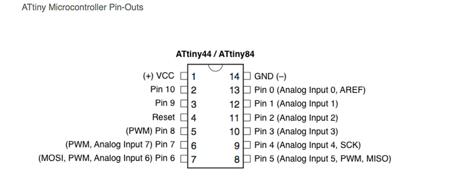 To burn the bootloader, i needed to identify the port in wich the FTDI cable was pluged, then in the tool tab, begin to set the information, board, processor, port, clock and programmer. Then I wanted the led light always on and turn it off every time I pressed the button. For that I looked for the table of equivalences between the ATtiny and the Arduino, so I can choose the right pins. After that I made the code on the Arduino IDE and test the board.
