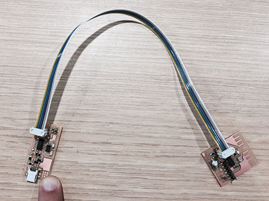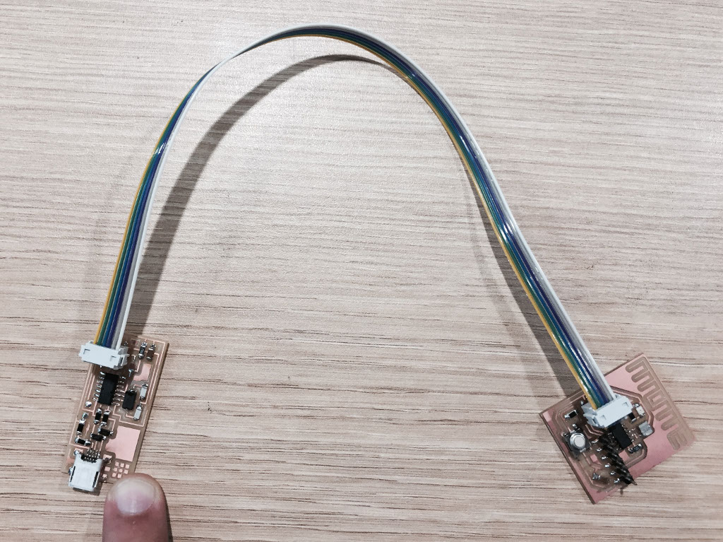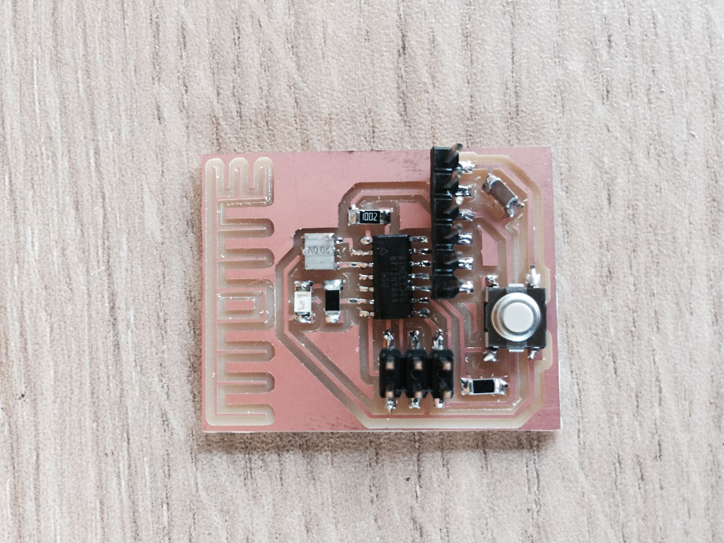 When the milling was finished, I requested the components to build the board and soldered them. I burn the bootloader to the board with the ISP we make on the fourth week (electronics production assignment) and a FTDI(3,3v) cable. The software we used was ARDUINO IDE, wich has his own programing lenguage.