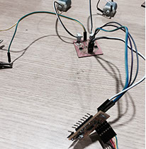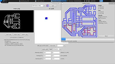 I mill the board with the Modela MDX, the first attempt did not turn out as expected, a partner kicked the extension plug inadvertently and the milling process stopped, so I had to make another attempt. The sencond one was successful an then I soldered the components.