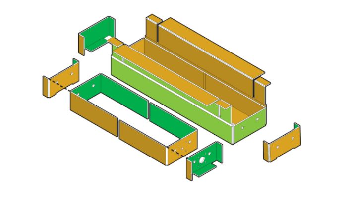 Our stage is a 3mm cardboard instead of the 4.04mm as the original design has. Checking the thickness of the design, we changed the original to a 3.66mm (where the 0.66mm lasercutter machine's kerf is included) and re-adapted the whole design to our machine.