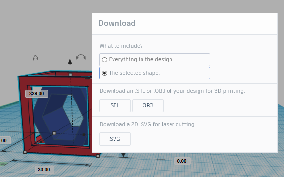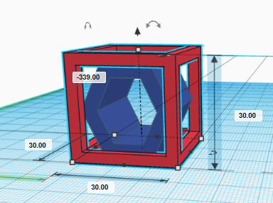 Using tinkercad, I draw a simple box with 30mm, make six 24mm holes on each side. Then I added a polygon in it. Since the objective was to design something that could not be made subtractively, I thought I would design some structure that is trapped inside a larger structure, I got this idea when I browse the class archive in 2016.