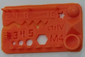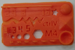 The 3 printout show that there is a shrink for the length, Width, thickness and holes sizes respectively. The minimum distance and walls also failed to print for 0.5 mm and below. Table below is a comparsion of the test result using the Fast Print option with the Test Parameters