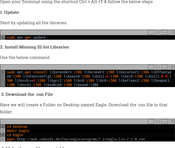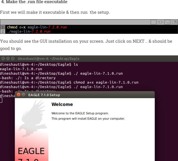 Just following the simple instructions to load Eagle and get it running.