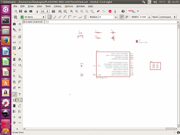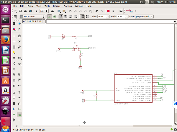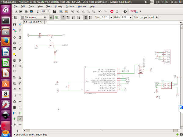 I had to get back to the schematic Design to add my switch and my LED