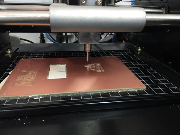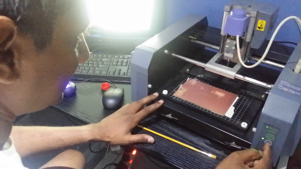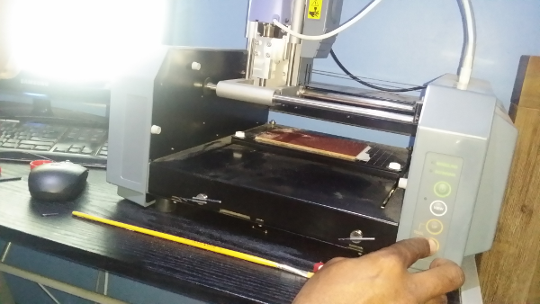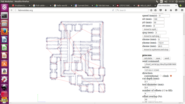 Ready To Mill. i go back to the fabmoule page and then select send , and there it goes , it starts to mill my first designed board.