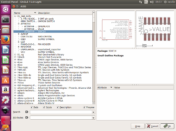 I then had to load the Fab Hello Button Liabrary and the Niel Gershenfeld Liabriary so that i would be able to get all my components available. I also Added the Fab Academy Liabrary as well.