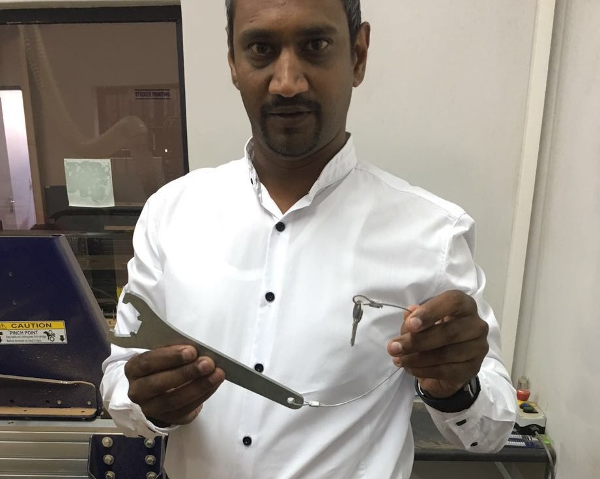 Moving to the Shopbot, I had already desiced i would be using a 3mm Bit. I had to change the bit on the spindle. The safety feature on the Shopbot is such that, the key to turn the computer box for the Spindle on, is attached to the tool that is used to change the bit. this means that when changing the bit the machine is gauranteed to be off. A brialiant safety feature