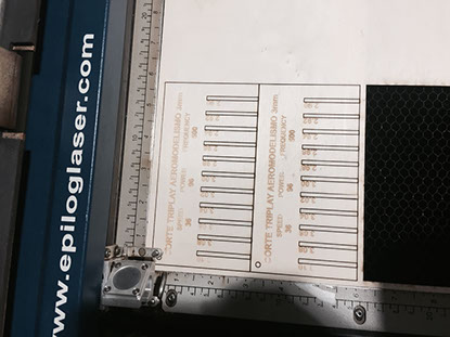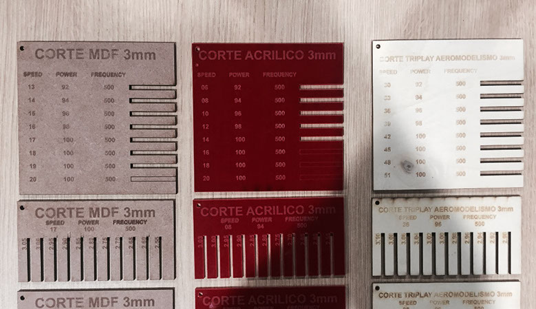 The final idea was to have a catalog for the FAB-LAB, and future assignments, to leave a record that allows us to define cutting parameters depending on the work to be performed on the epilog laser cutter, since these tests only work for this particular machine.
