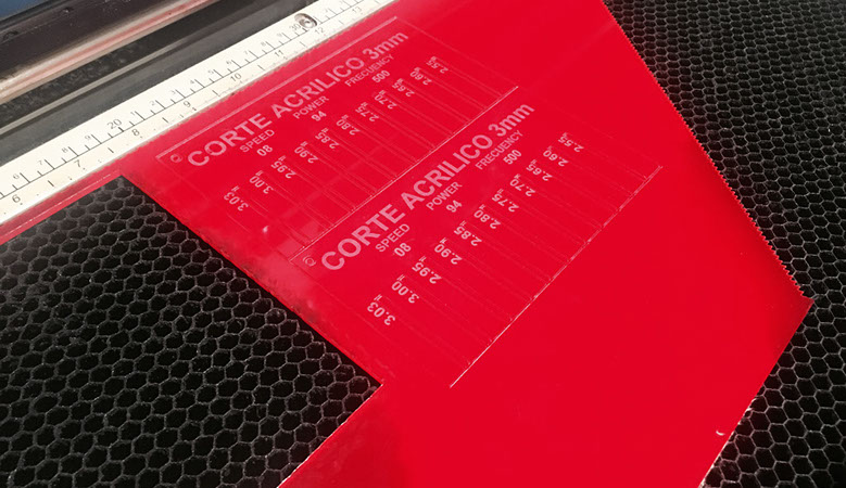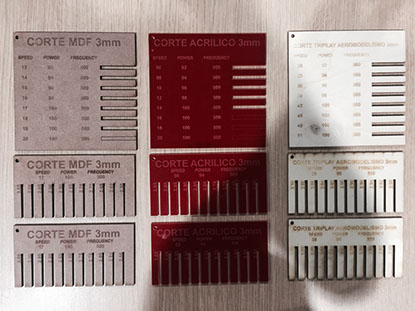 Then we set the cutoff parameters for each value to be tested, the Raster and Vector settings, were the most important, due to the gradation of speed and power. Raster defines the engraving in the piece, which can be from simple text, to photographs and graphics. Vector instead defines the cutting path in the material.