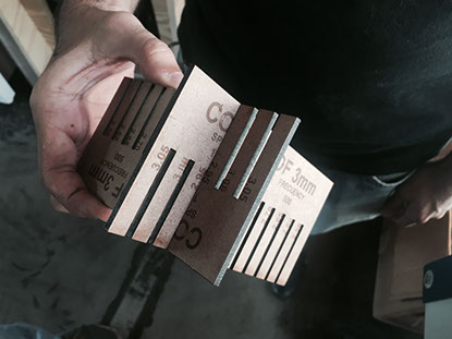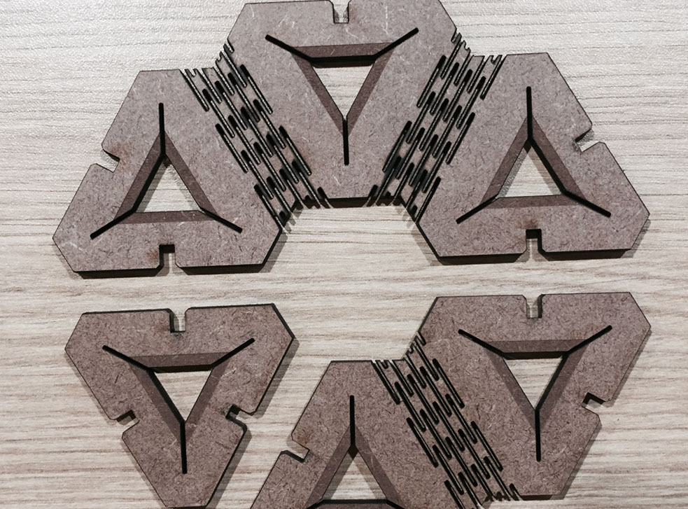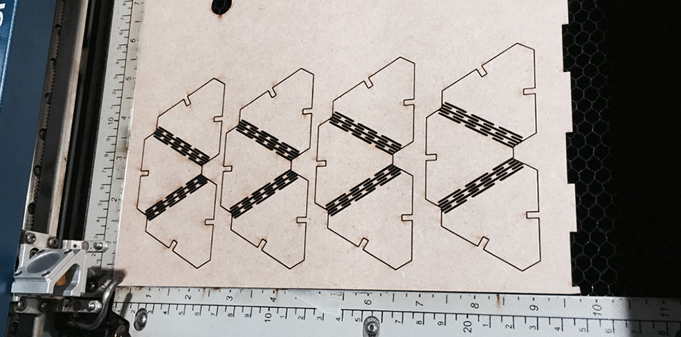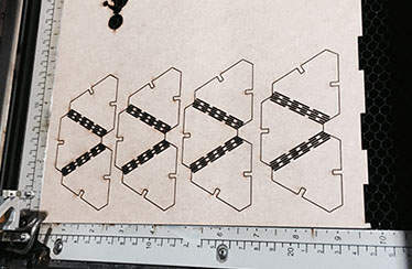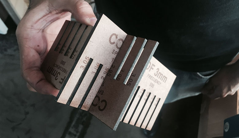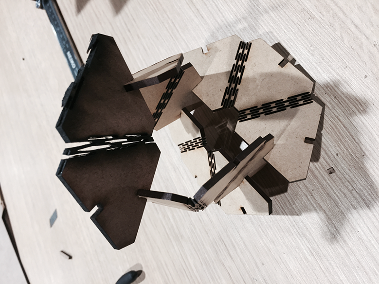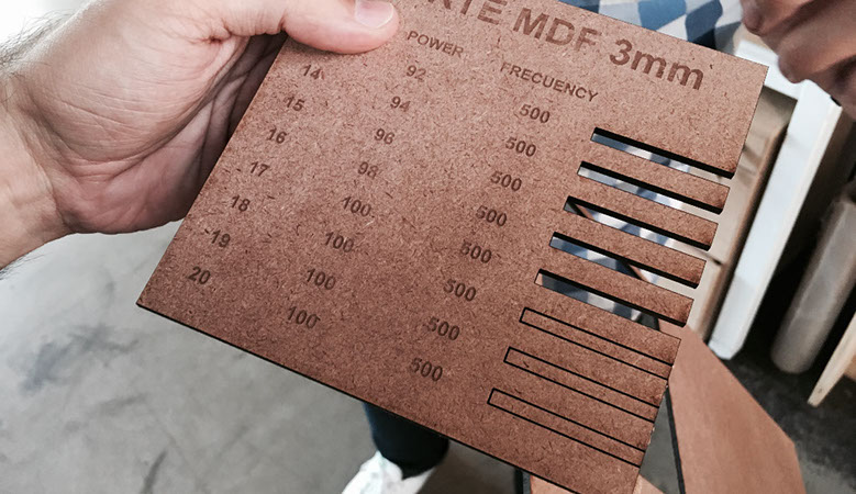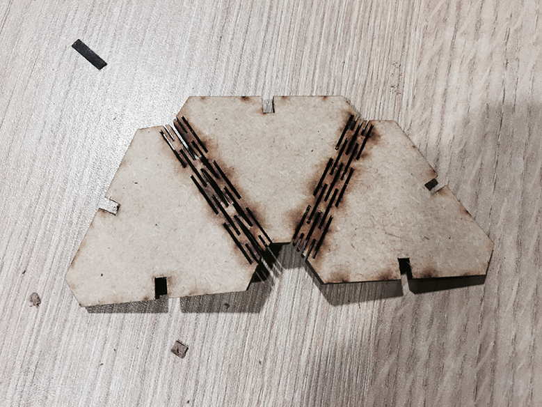 We did the same procedure for each material, we tested first Raster and Vector Parameters and then the thickness for the press-fit assignment. We had to take into account that the more speed, the less time, but the possibility remained that the material had not been cut properly. With the power we could define the intensity of the laser, however we ran the risk of burning the material. In addition, depending on the type of material and its thickness, the values of power and speed were very different.
