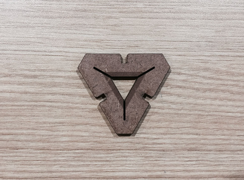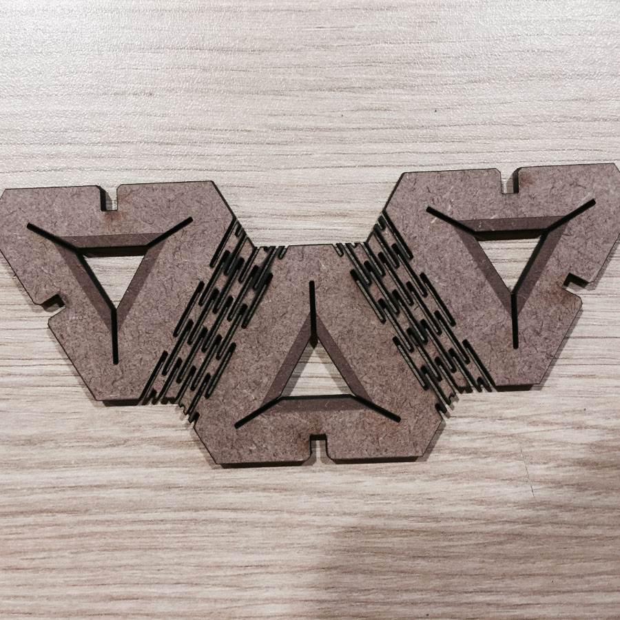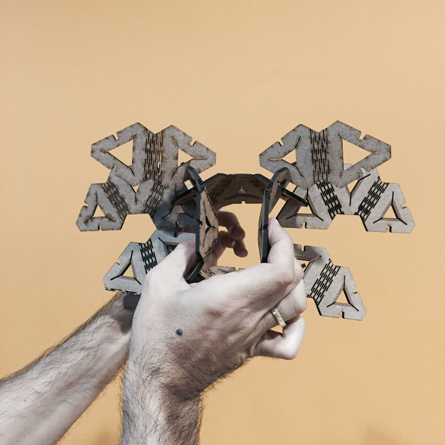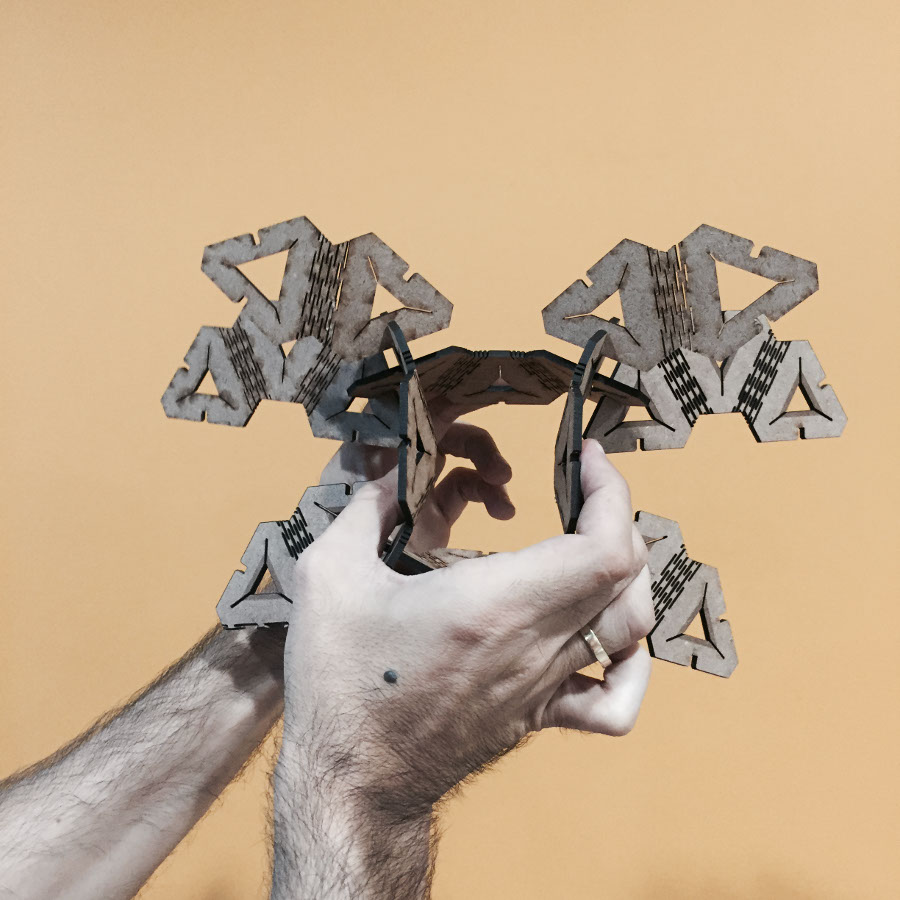 With this assignment my idea was to make a single modular piece for the whole construction kit. First I thought in a simple triangle but I wanted it to be more versatile, not just 30º, 60º and 120º. I also wanted an orthogonal possibility and an even more flexible piece, so I add a kerv articulation.