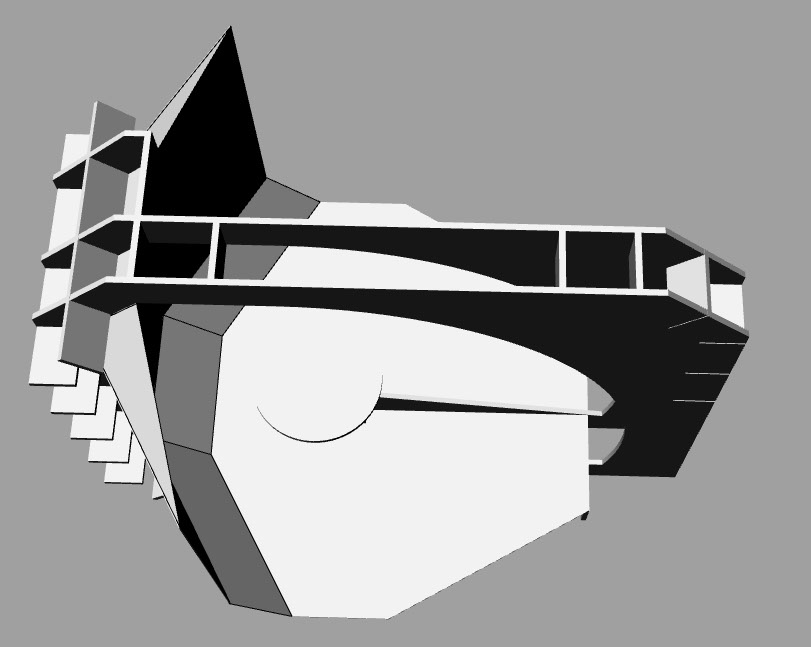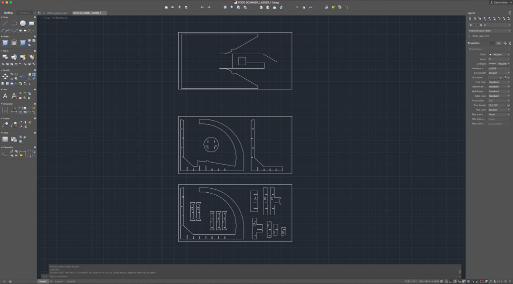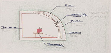 After the first experience, I decided to model the structure in Rhino and make another scale model. This time fixing the structure problems. For example the frame of the machine is completed to give greater stability and rigidity to the object. The turntable would consist of two parts (fixed and movable)