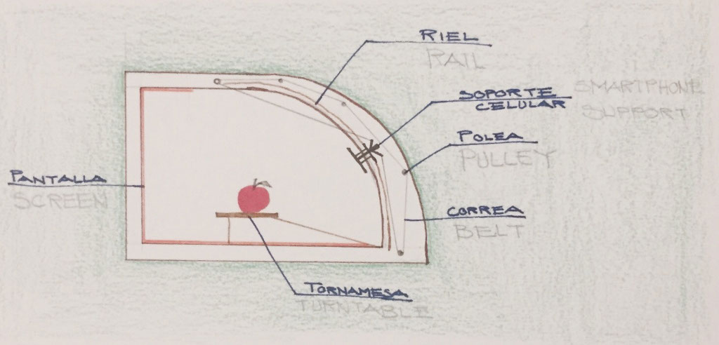 For this task I was in charge of the general design and structure design. So after we defined the main idea of what we were going to do I begin to think and discuss my ideas with the group. The Scanner was supposed to use photogrammetry, so it can use any Android OS cellphone. Because of that, I started researching about photogrammetry and found Nedim Dzananovic's final project, which was very useful for me to understand the subject. So, I came to the conclusion that we had to make a machine with two degrees of freedom.