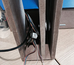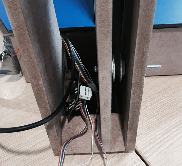 The most complicated problem to solve in the design was the bow rope formed by the rails and the strap, because due to the position of the cart the distances varied and the rope should be, at times, longer and shorter. The solution was to place between the cart and the belt, elastic bands that assumed the difference in length. you can check that on the group video.