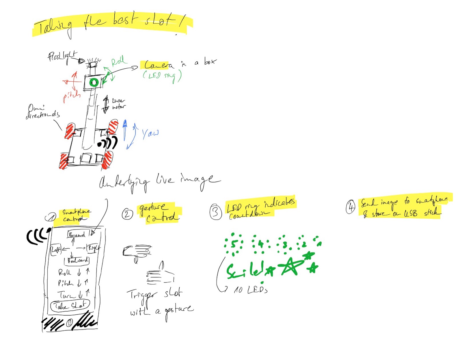 During the design phase, I was thinking about many different concepts of how to potentially drive the bot. The initial idea, which is also depicted in the sketch was an omniwheel driven plattform. With this however comes the necessity of having four powered wheels, which gives a lot of control in positioning the robot but appears rather complex. I also thought about a single powered wheel in the back which can be turned in any direction.