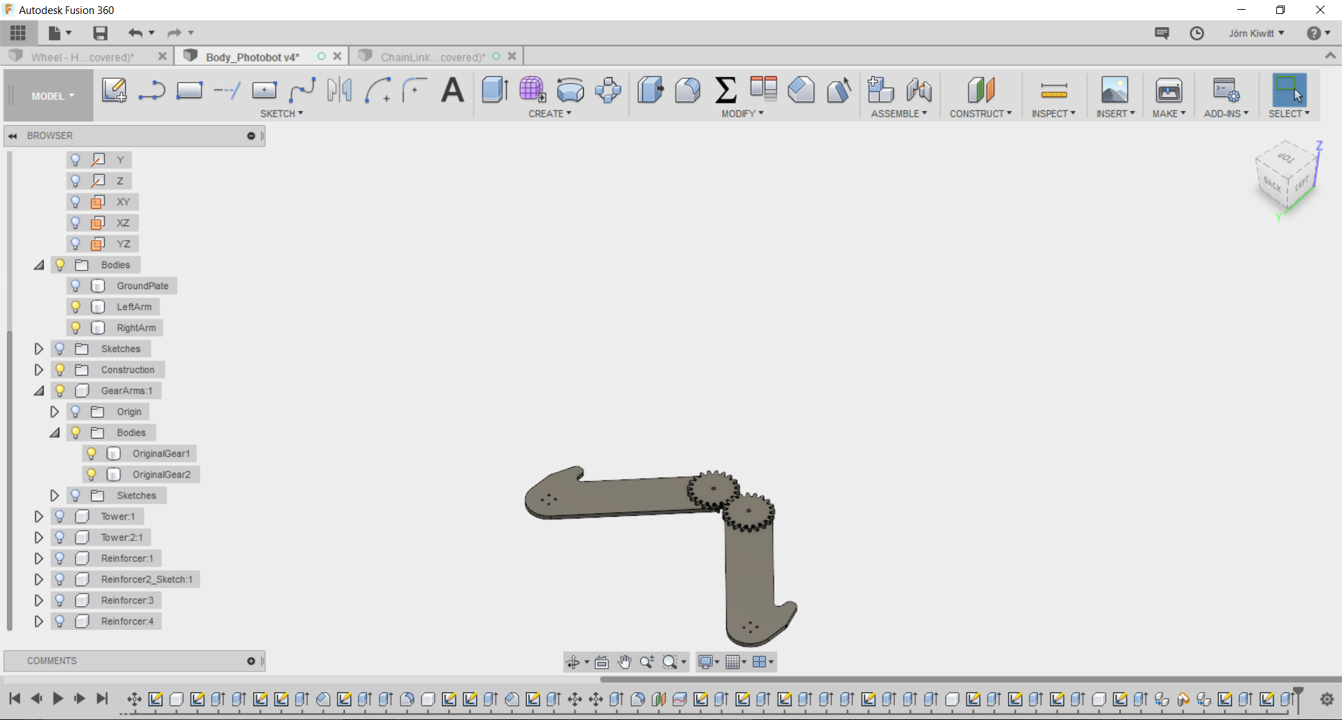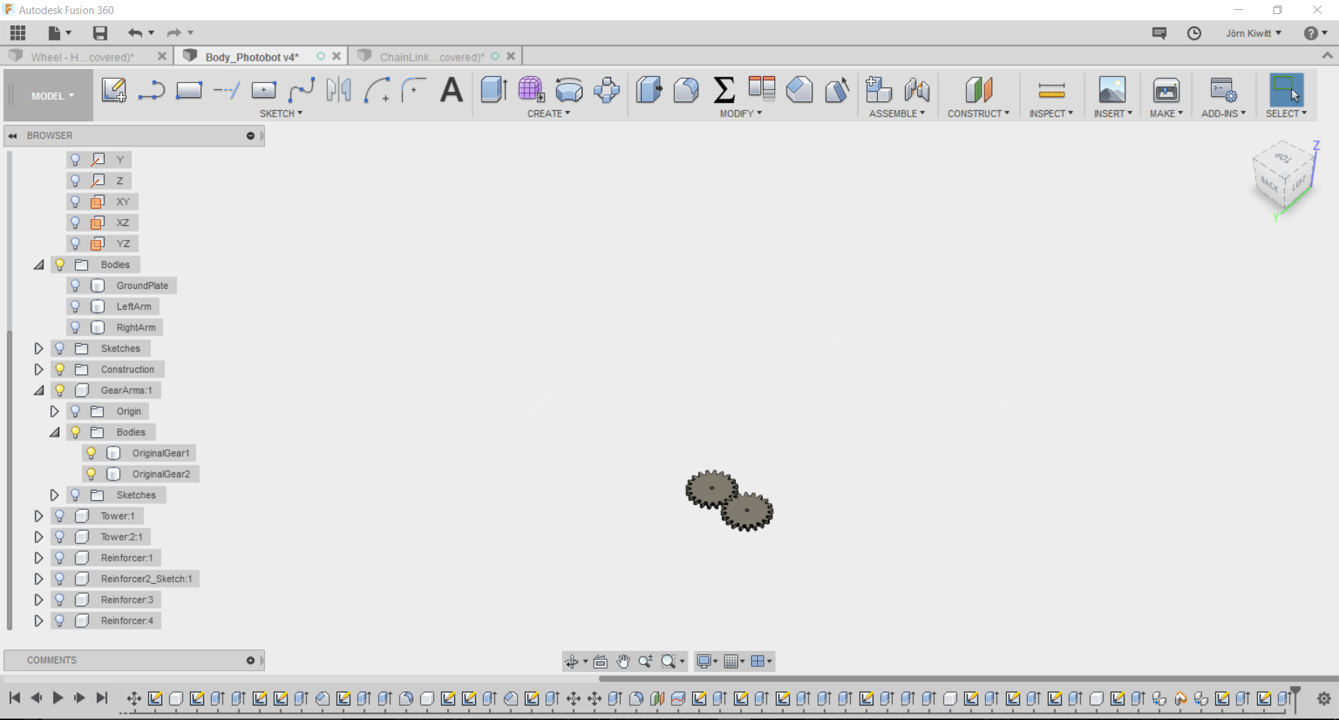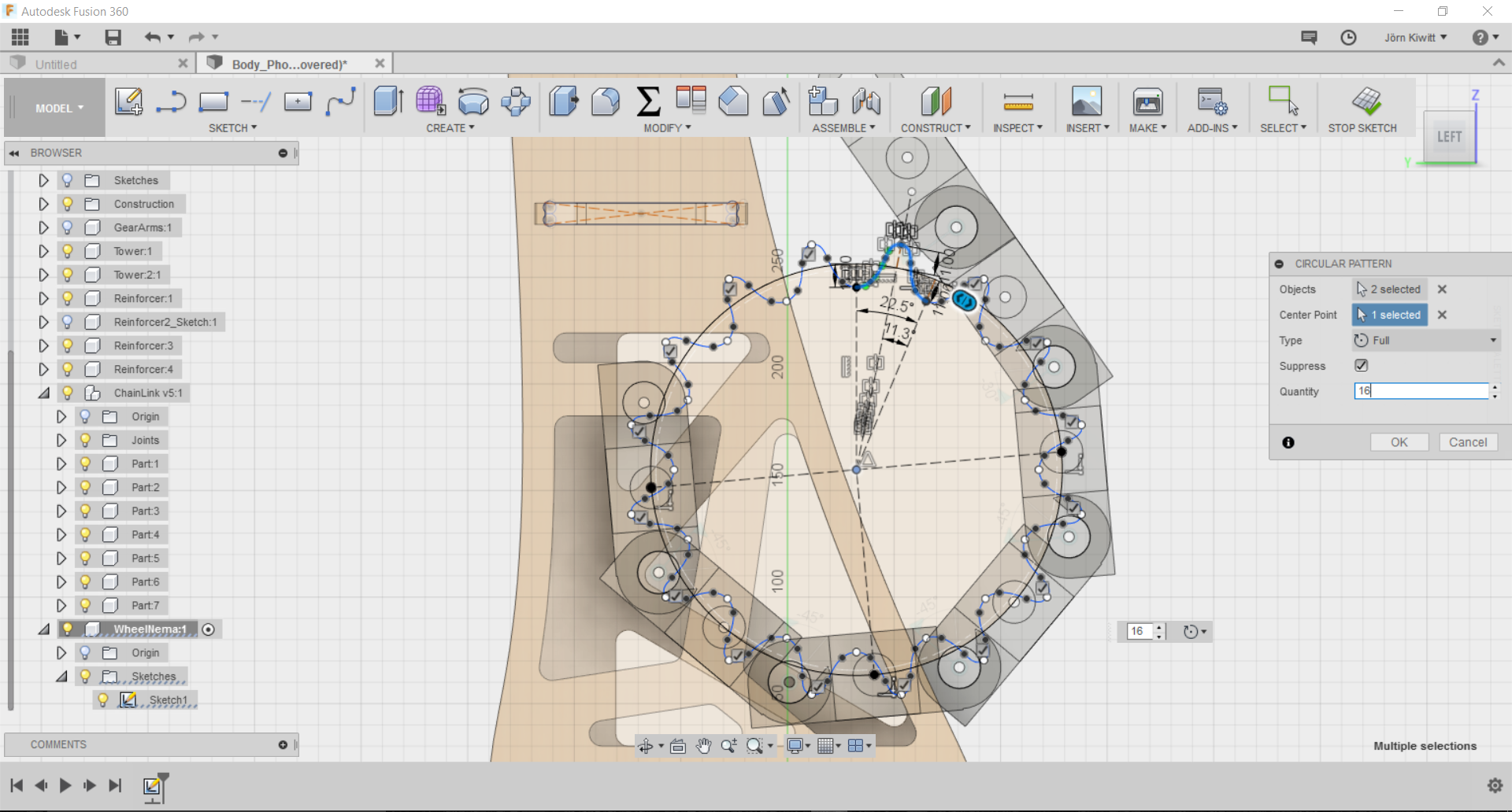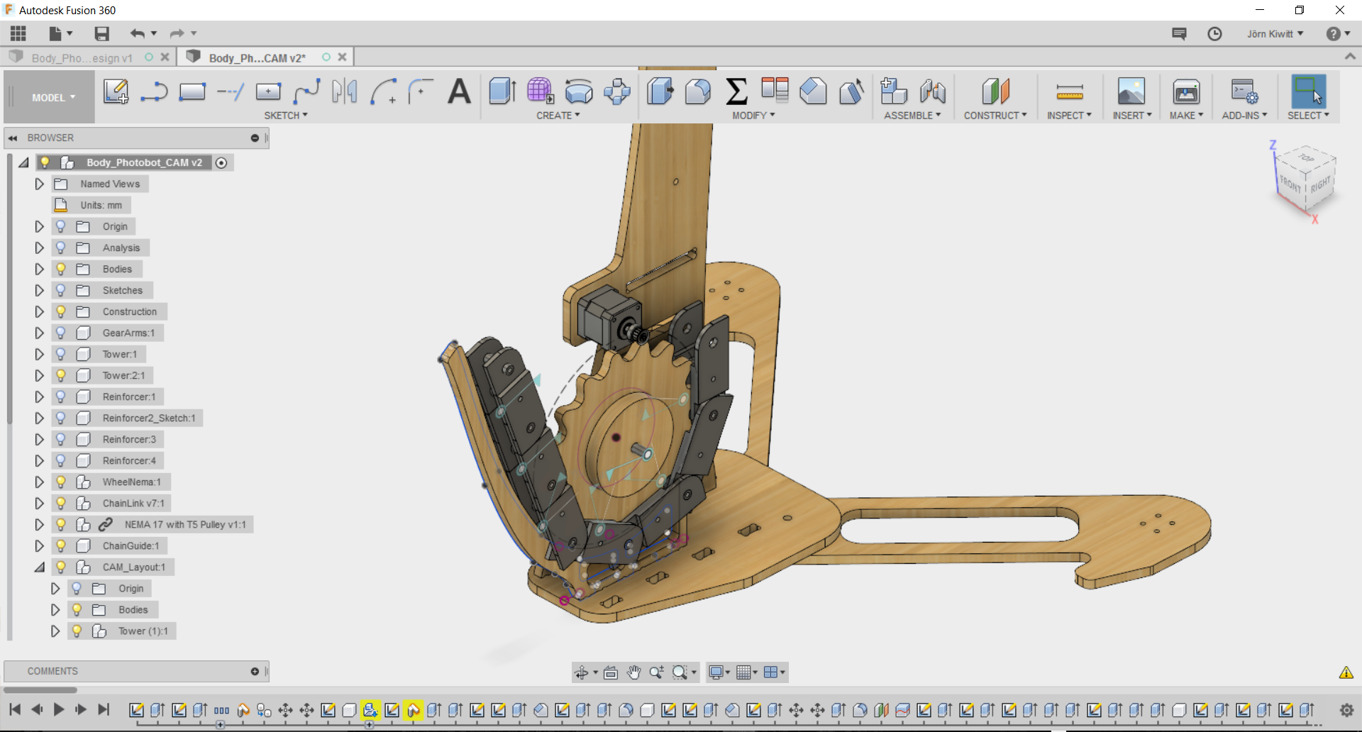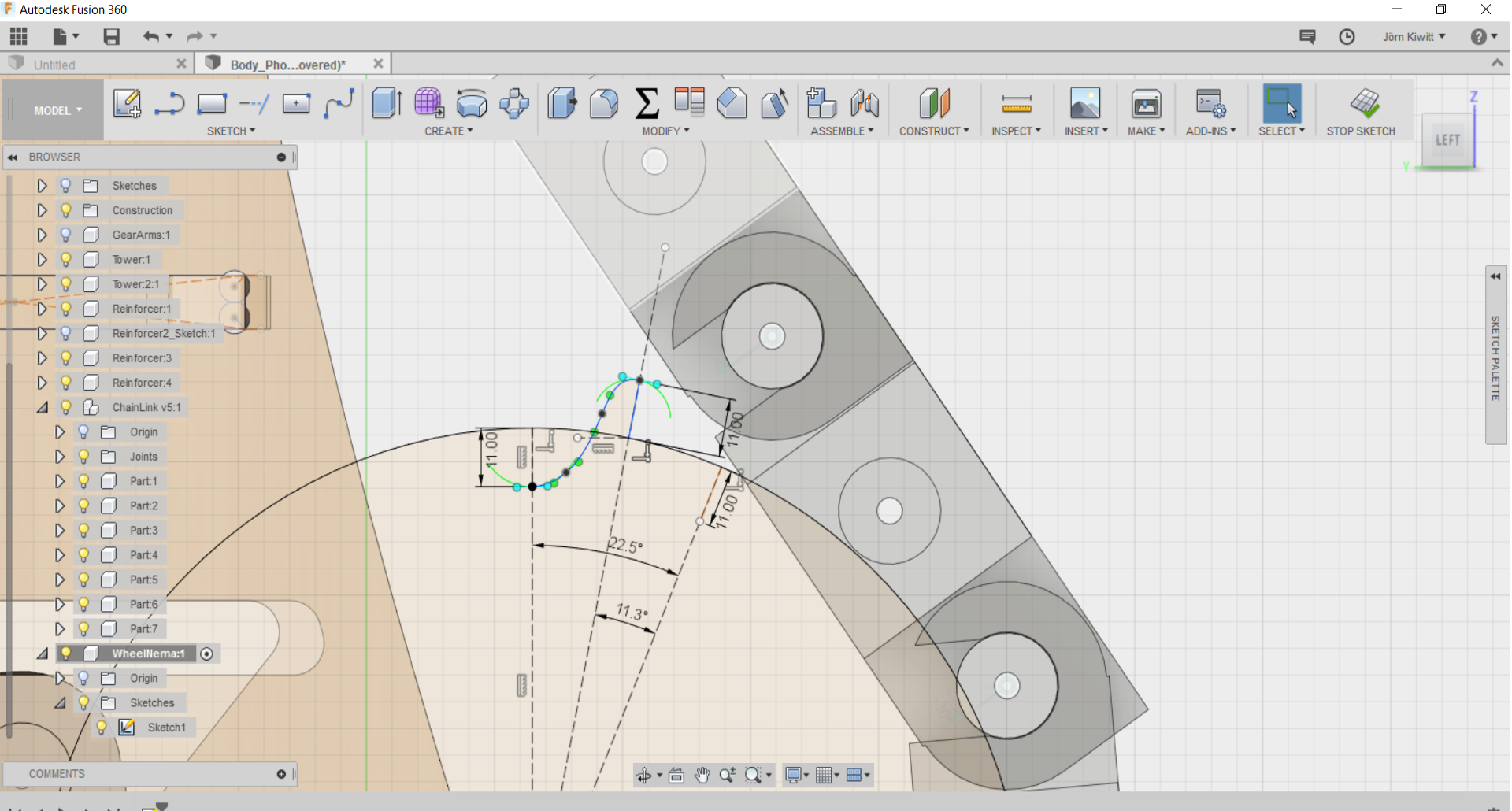 It turned out that a real chain movement is not easy realize in Fusion. If you see chain running, these often follow given functions, so I did not spend further effort fitting it. Still, I arranged the chain in a way that it could be pushed by a sprocket.