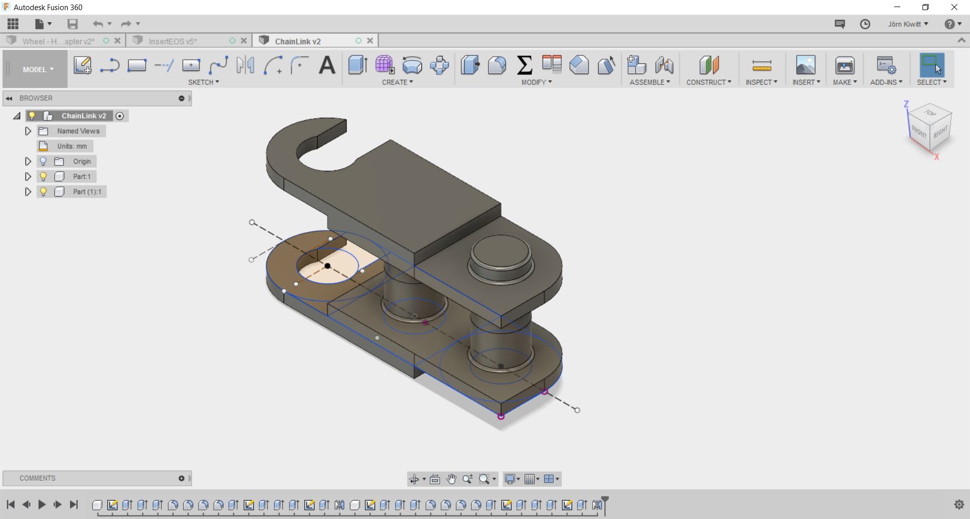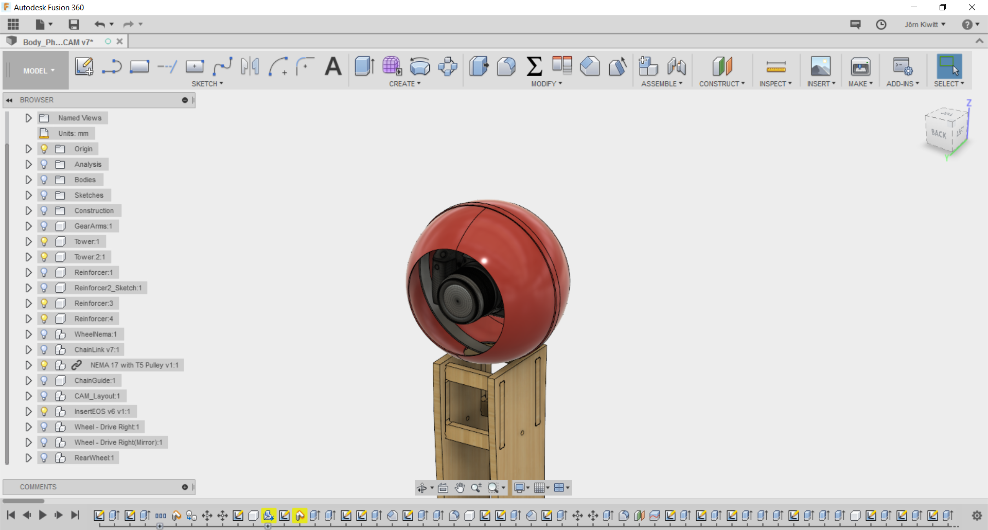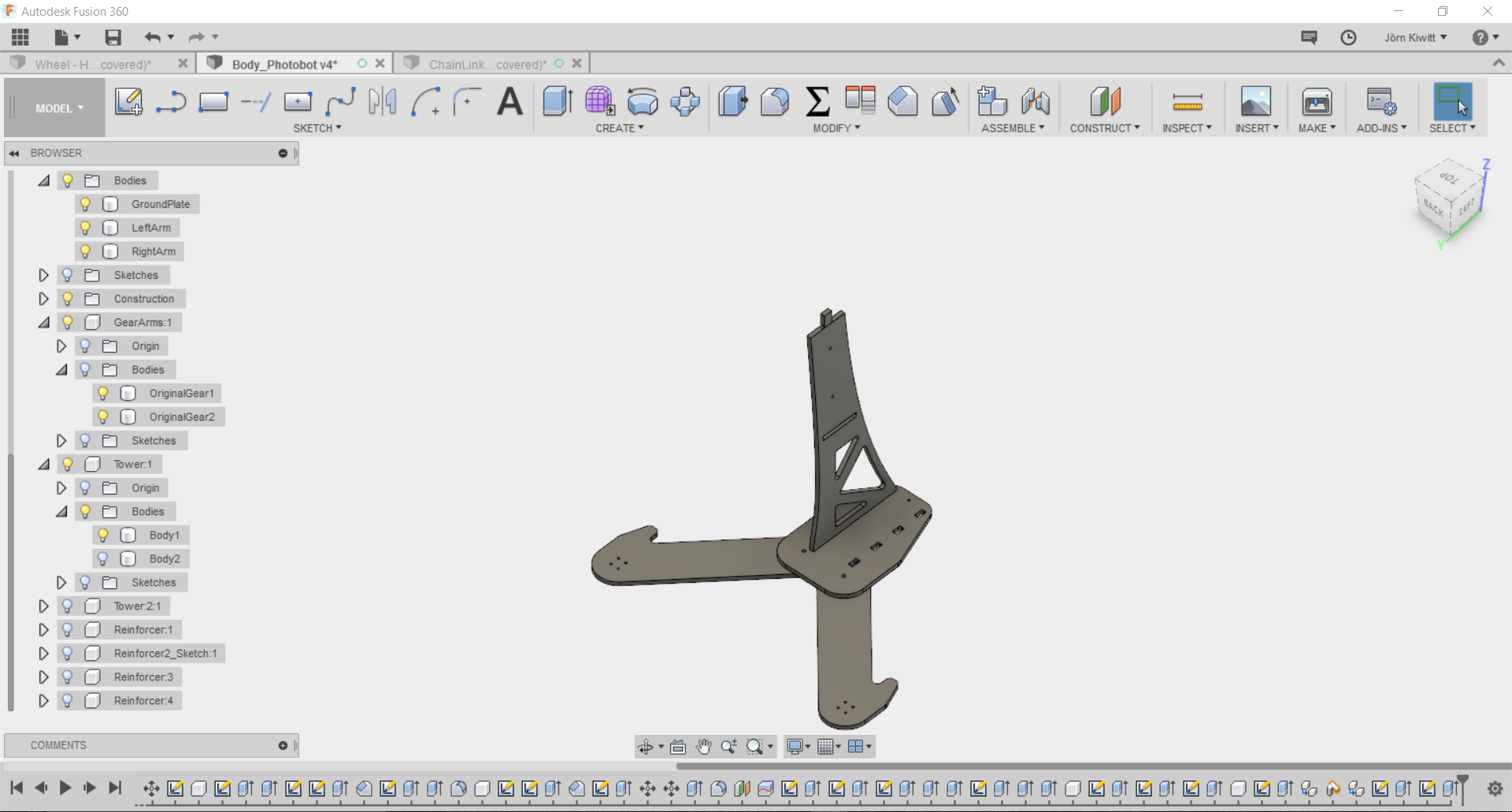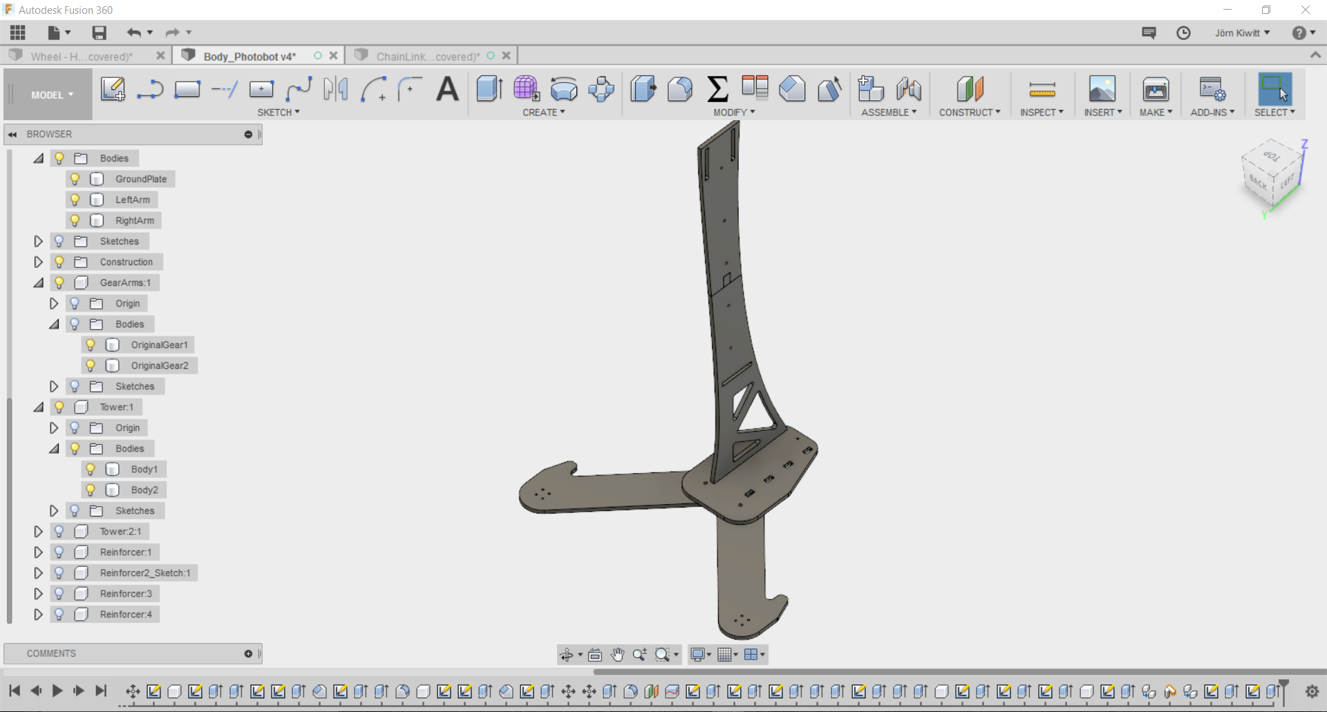 It turned out that a real chain movement is not easy realize in Fusion. If you see chain running, these often follow given functions, so I did not spend further effort fitting it. Still, I arranged the chain in a way that it could be pushed by a sprocket.