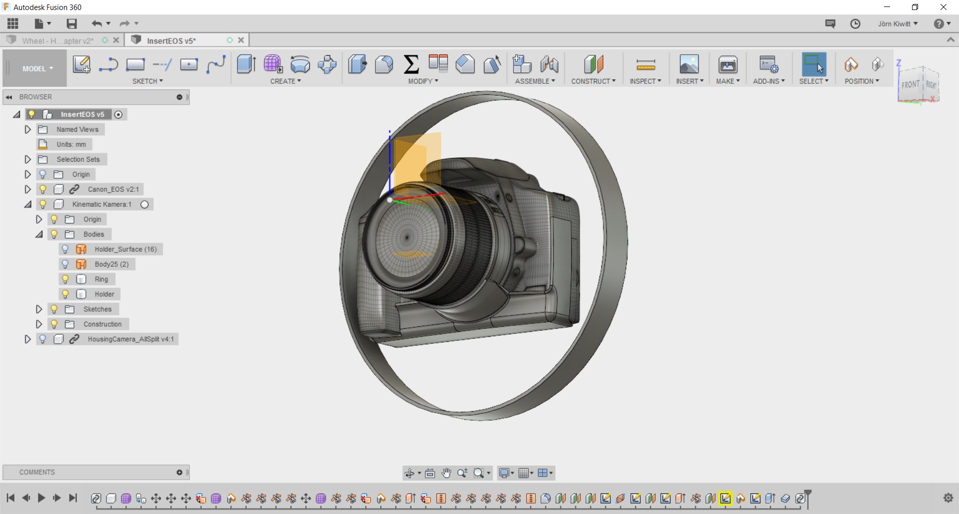 I finally added some reinforcing elements which will later also carry the actuator for raising the camera.