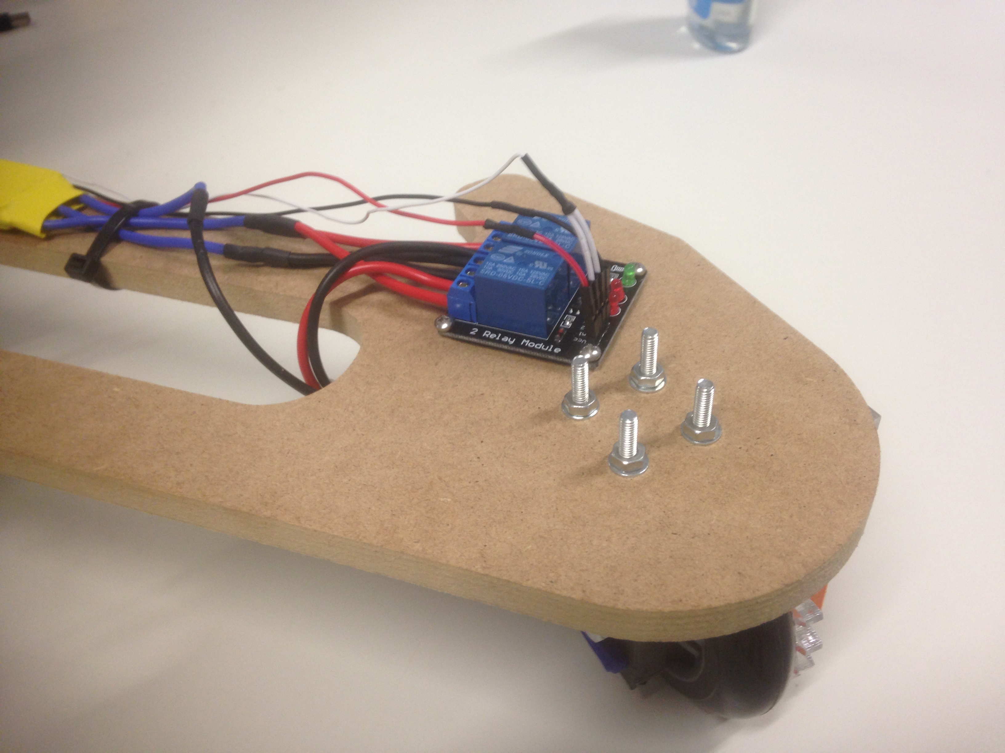 I finally went for two BLDC powered wheel, driven by a belt in the first place. Steering will be achieved by giving differentiated power to the two ESC motors. At first, I wanted to cast the wheels myself but the processs turned out to be too time and error prone for a novice as I learned during the making of the rim in the molding and casting week. I finally went for inline skatewheels of 80 mm diameter which were easy to get and affordable.